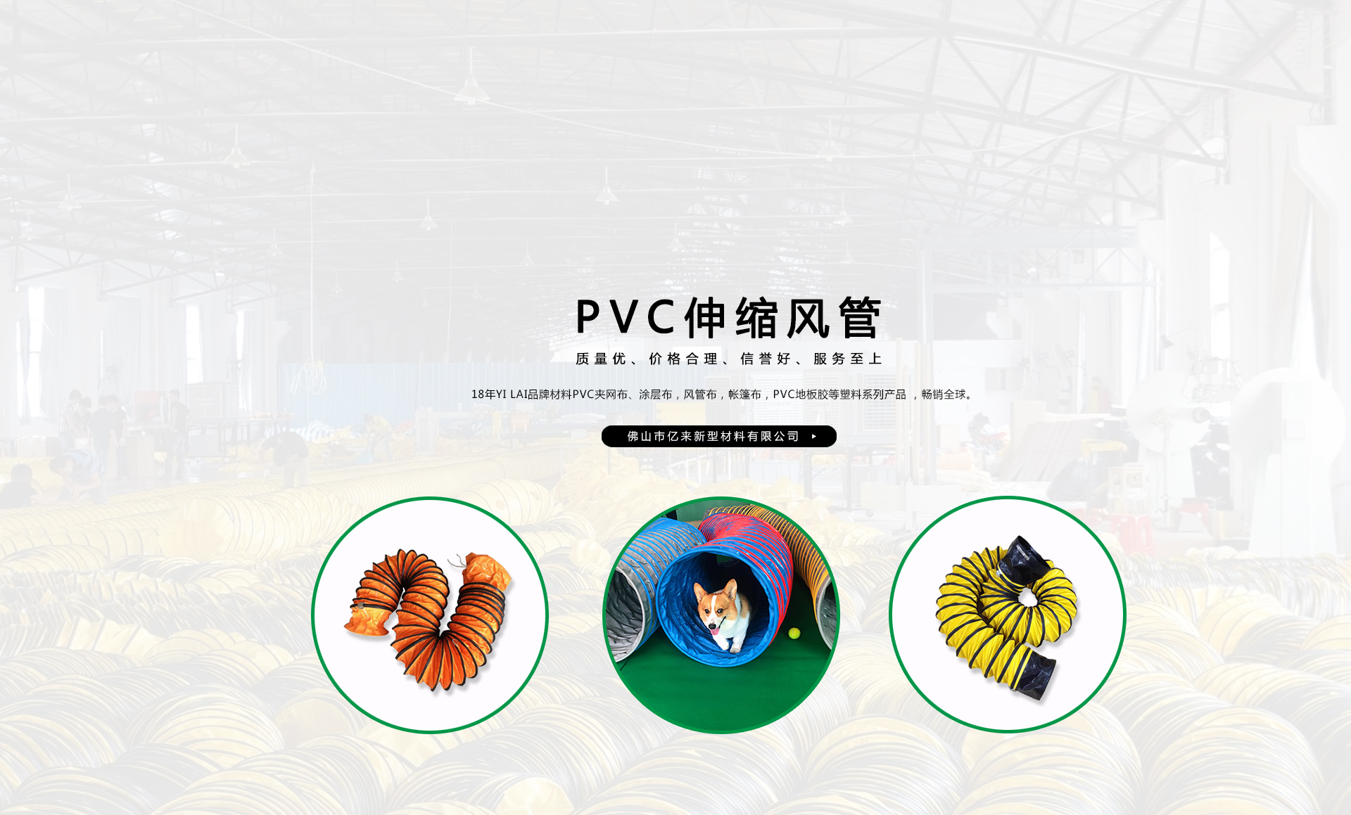 創(chuàng)建“YILAI品牌”近20年來,產(chǎn)品質(zhì)量穩(wěn)定提高,生產(chǎn)及經(jīng)營(yíng)的產(chǎn)品包括PVC夾網(wǎng)布、PVC彩條布、PVC風(fēng)管布、PVC涂層布、PVC籬笆圍護(hù)欄布、PVC透明夾網(wǎng)布、PVC伸縮風(fēng)管、車縫風(fēng)管、寵物管、耐高溫風(fēng)管、地下室通風(fēng)管,保溫通風(fēng)管、空調(diào)排風(fēng)管、正負(fù)壓通風(fēng)管、三通/四通排風(fēng)管、防靜電風(fēng)管、隧道風(fēng)管、PVC地板膠等系列產(chǎn)品在市場(chǎng)上得到廣大客戶認(rèn)可,暢銷歐美、東南亞、非洲、中東等國(guó)外市場(chǎng)。
